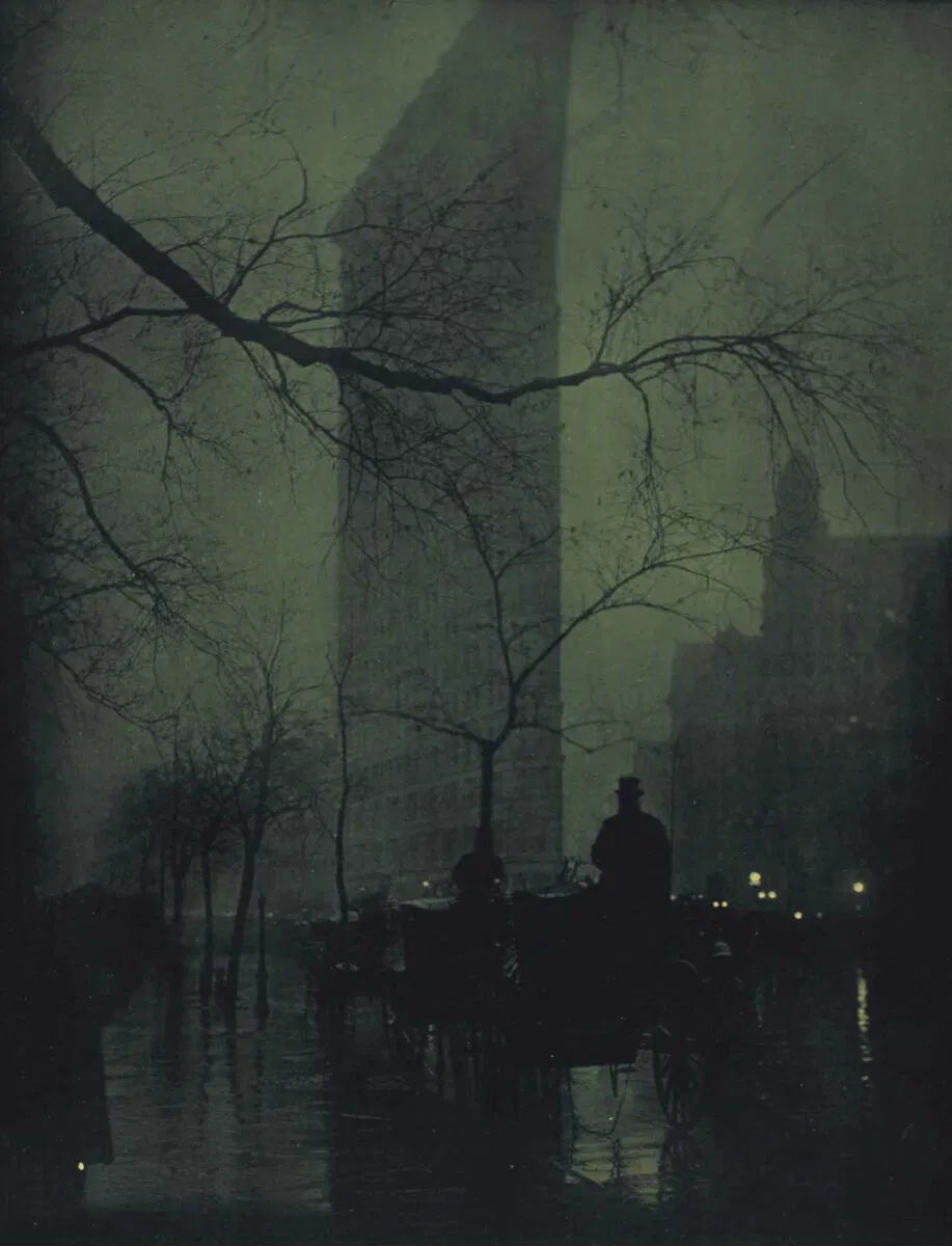 Una delle immagini più iconiche mai catturate, il capolavoro di Steichen, ferro da stiro, raffigura il suo eponimo (appena due mesi dopo la sua costruzione), che si staglia imponente contro il cielo crepuscolare di New York. Stampata nel 1909, Steichen stratificò pigmenti, sospesi in una soluzione fotosensibile di gomma arabica e bicromato di potassio, per colorare la stampa al platino che costituisce la base della fotografia, ottenendo un'estetica pittorica sorprendente che dimostrava, con grande efficacia, il potenziale artistico della fotografia.