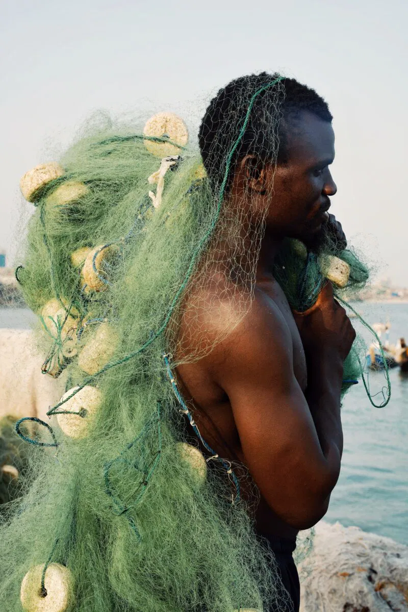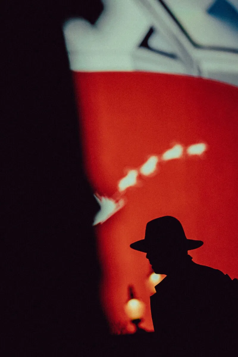"Questa immagineffascina con la sua luce dorata e il ricco contrasto tonale, evocando un senso di calore e di quieto rituale. L'interazione tra figure in silhouette e tessuti vibranti crea un forte ritmo visivo e una composizione stratificata. È un momento di osservazione potente, che trasmette risonanza e cattura l'attenzione. " –Pia Riverola